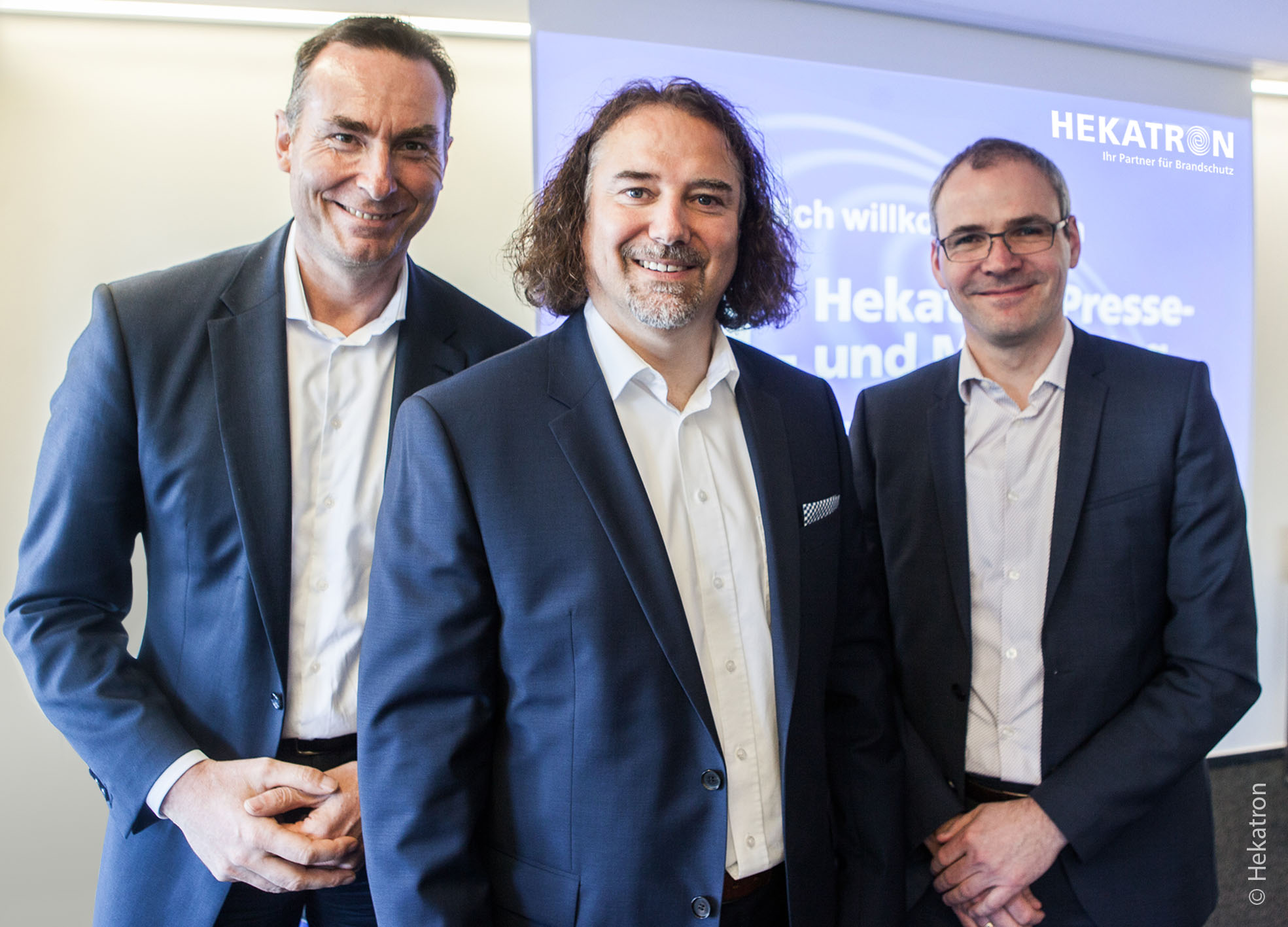 Wollen den Wandel gestalten (v.l.n.r.): Geschäftsbereichsleiter Rauchschaltanlagen und Rauchwarnmelder, Andreas Seltmann, Geschäftsbereichsleiter Marketing und Hartmut Dages, Geschäftsbereichsleiter Produktmanagement Seltmann , Rudolph , Dages