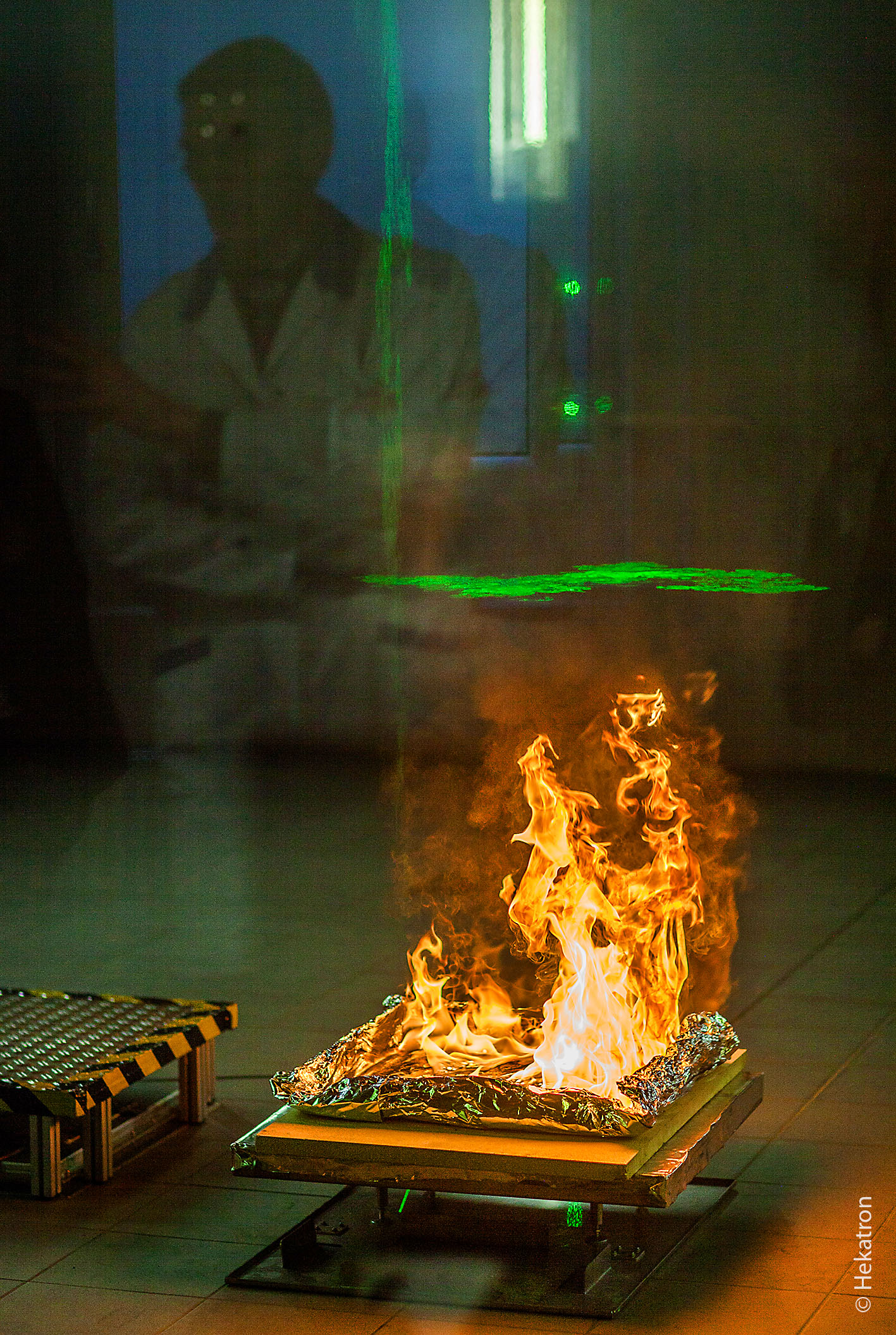 Brandversuch im neuen, weltweit einmaligen Erprobslabor für Brandmelderapplikationeung (kurz: ELBA)
