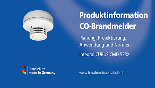 Von den circa 350 Brandtoten pro Jahr in Deutschland ersticken die meisten an einer Kohlenmonoxidvergiftung. Dieses Gas ist unsichtbar, geruch- und geschmacklos. Es wird daher als „leiser Killer“ bezeichnet. Zur rechtzeitigen Detektion von Kohlenmonoxid (CO) bietet Hekatron Brandschutz den Brandmelder Integral CUBUS CMD 533X. Dieser Mehrfachsensormelder detektiert Rauch, Wärme und Kohlenmonoxid, was zu einer noch sichereren Branderkennung und gleichzeitig zu einer höheren Täuschungsalarmsicherheit beiträgt. Eine neue Produktinformation geht ausführlich auf die Planung und Projektierung des CMD 533X ein, gibt umfangreiche Anwendungsempfehlungen und erläutert die einschlägigen Normen.