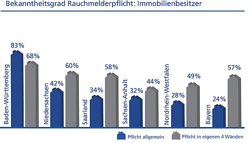Bekanntheitsgrad Rauchmelderpflicht: Immoblilienbesitzer