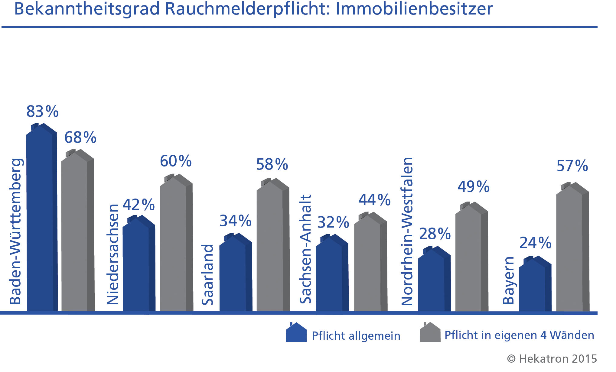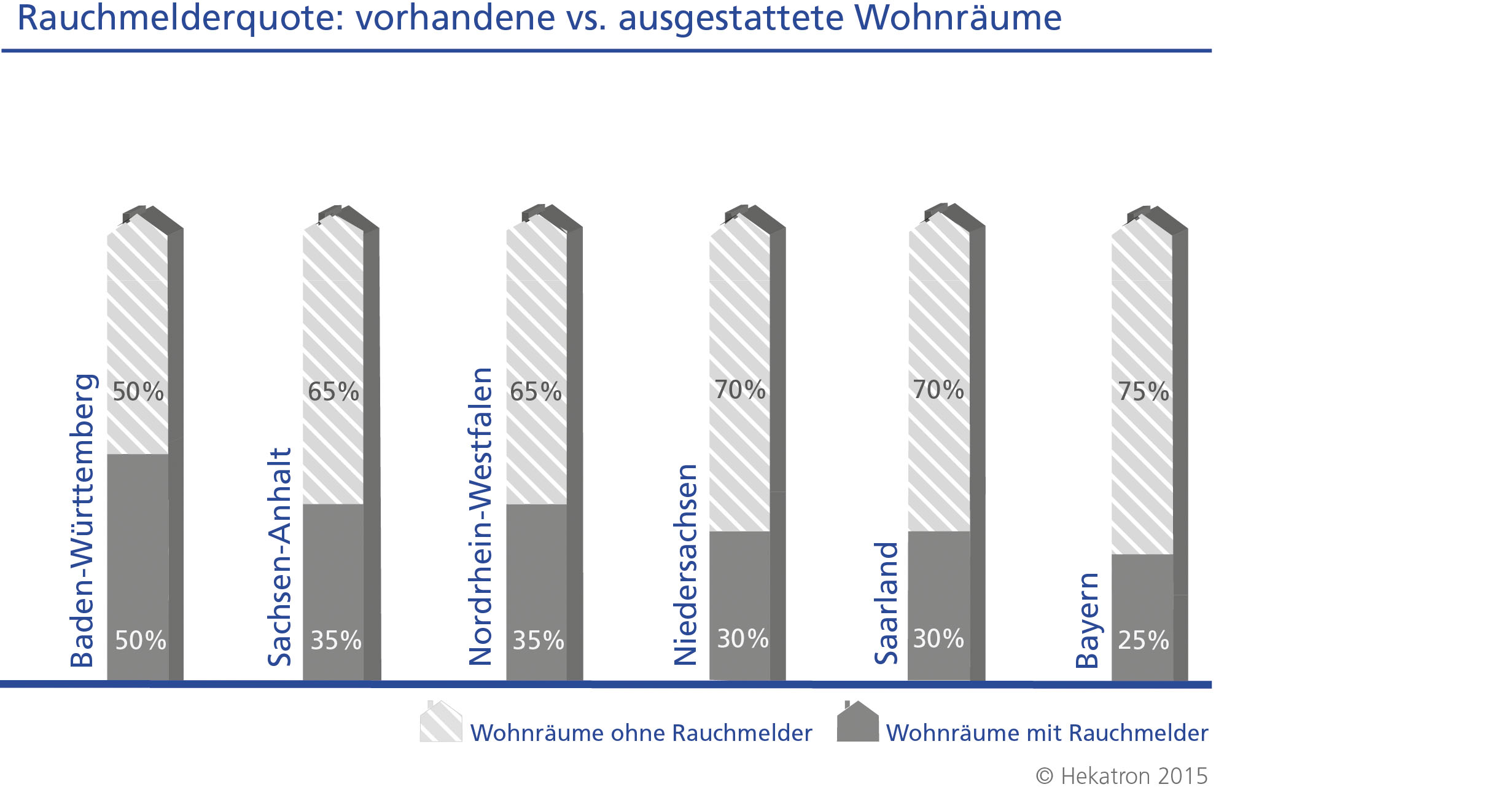 Im August 2015 befragte das Meinungsforschungsinstitut FORSA jeweils 1.000 Personen über 19 Jahre in Baden-Württemberg, Bayern, Niedersachsen, dem Saarland, Sachsen-Anhalt und Nordrhein-Westfalen. Beauftragt wurde die Befragung von der Hekatron Vertriebs GmbH.
