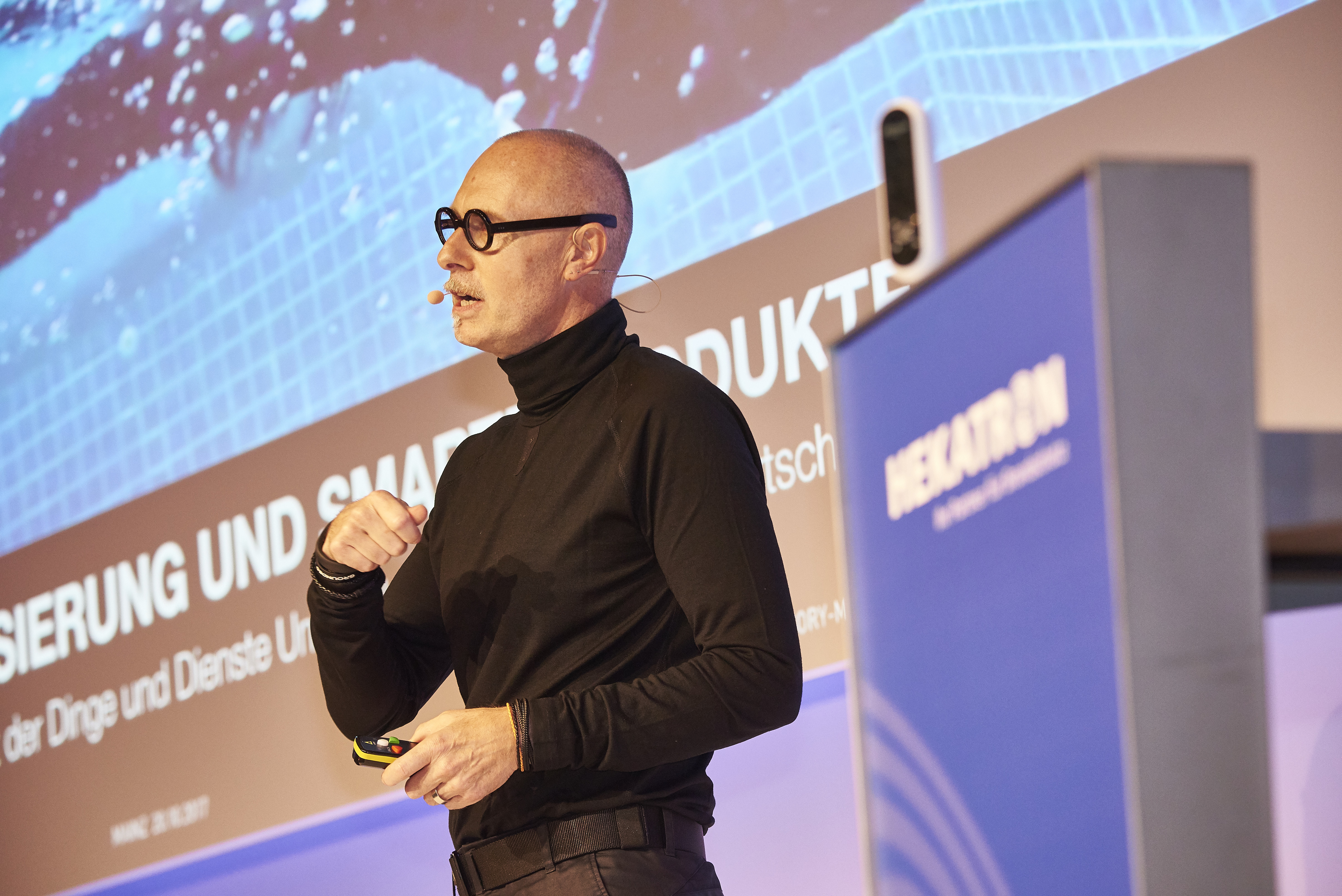 In diesem Zuge führe die Entwicklung vom Produkt zum Produkt-Ecosystem, bei dem die Produkte sinnvoll miteinander verknüpft sind. „Es ist wichtig zu verstehen, dass ein reines Produkt gegenüber einem Produkt-Ecosystem keine Chance hat, weil der Mehrwert eines in ein Ecosystem integrierten Produktes signifikant größer für den Nutzer ist – es bietet mehr Dienste“, betont Wolfgang Henseler. „In der digitalen IoT-Welt sind sowohl Dienste als auch Dinge wichtig. Deshalb gehen die Unternehmen, die aus dem Digitalbereich kommen, wie Amazon, Google oder Facebook, jetzt auch zunehmend in den Hardware-Bereich. Mit den Dingen kommen sie ganz nah an den Endkonsumenten und seine Daten heran – und die entscheiden in einer Welt des Data-Driven Business über den Erfolg.“ Wie Amazon den Bereich der Hardware für sich nutzt, um Daten zu gewinnen und Märkte zu erobern, machte Wolfgang Henseler am Beispiel des Amazon Holodecks deutlich, das nächstes Jahr auf den Markt kommen soll. „Dieses kleine Gerät, das an der Decke hängt, hat sehr viel Sensorik und Aktorik. Es kann zuhören, zuschauen und riechen, wenn es brennt. Bald wird es anhand von Molekülen auch analysieren können, was jemand kocht, und dann auf Wunsch das passende Getränk liefern lassen. Es wird auch die Hersteller von Rauchwarnmeldern in die Enge treiben, wenn die nicht von ihrer eigenen Kompetenz kommend in Diensten denken, kollaborieren und rechtzeitig einen Schritt schneller und besser werden.“
