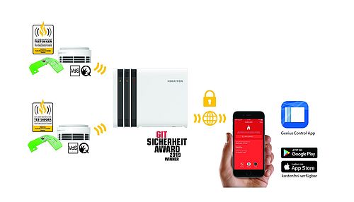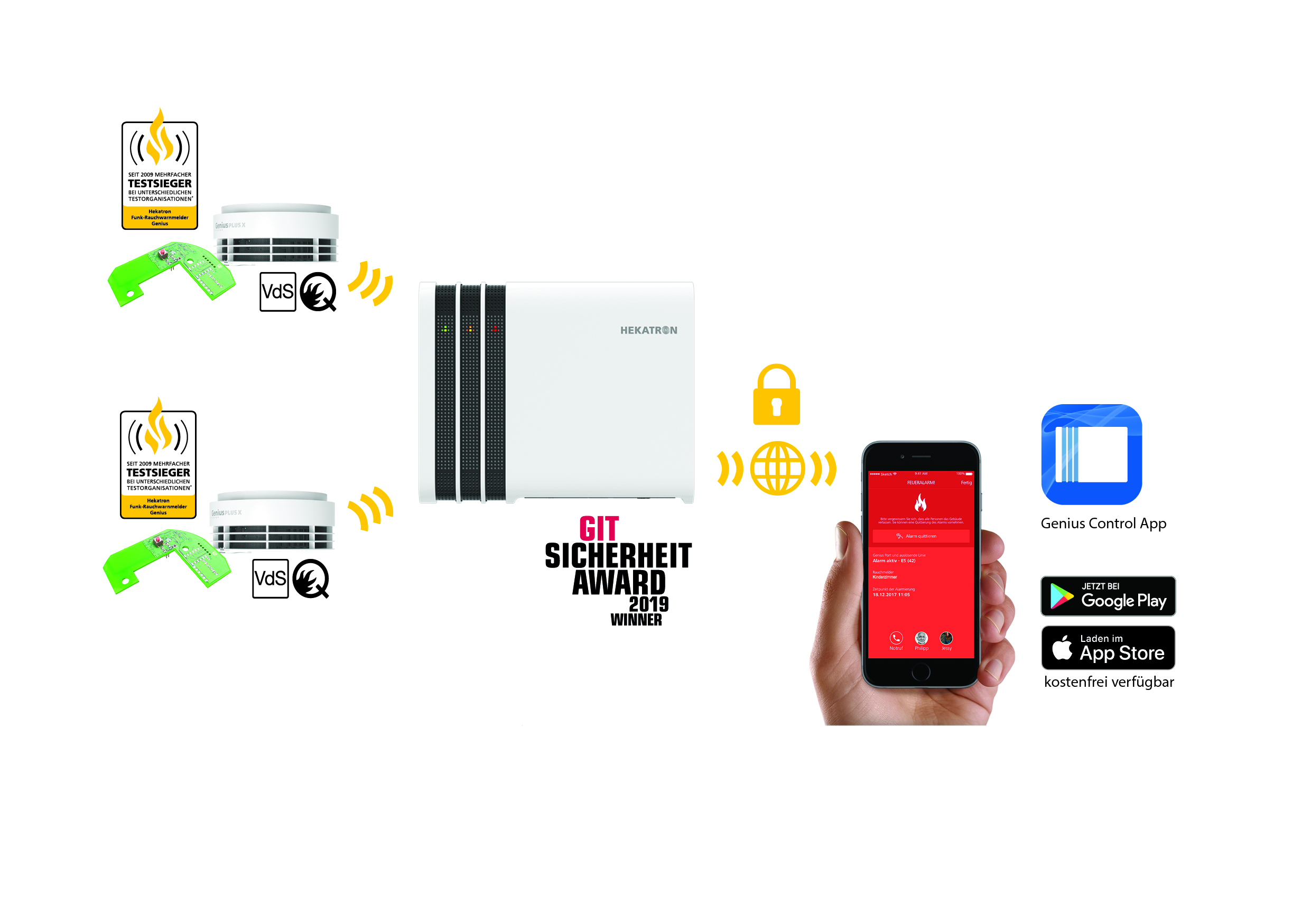 Das Genius Funksystem: Funk-Rauchwarnmelder Genius Plus X, Genius Port und Genius Control App.