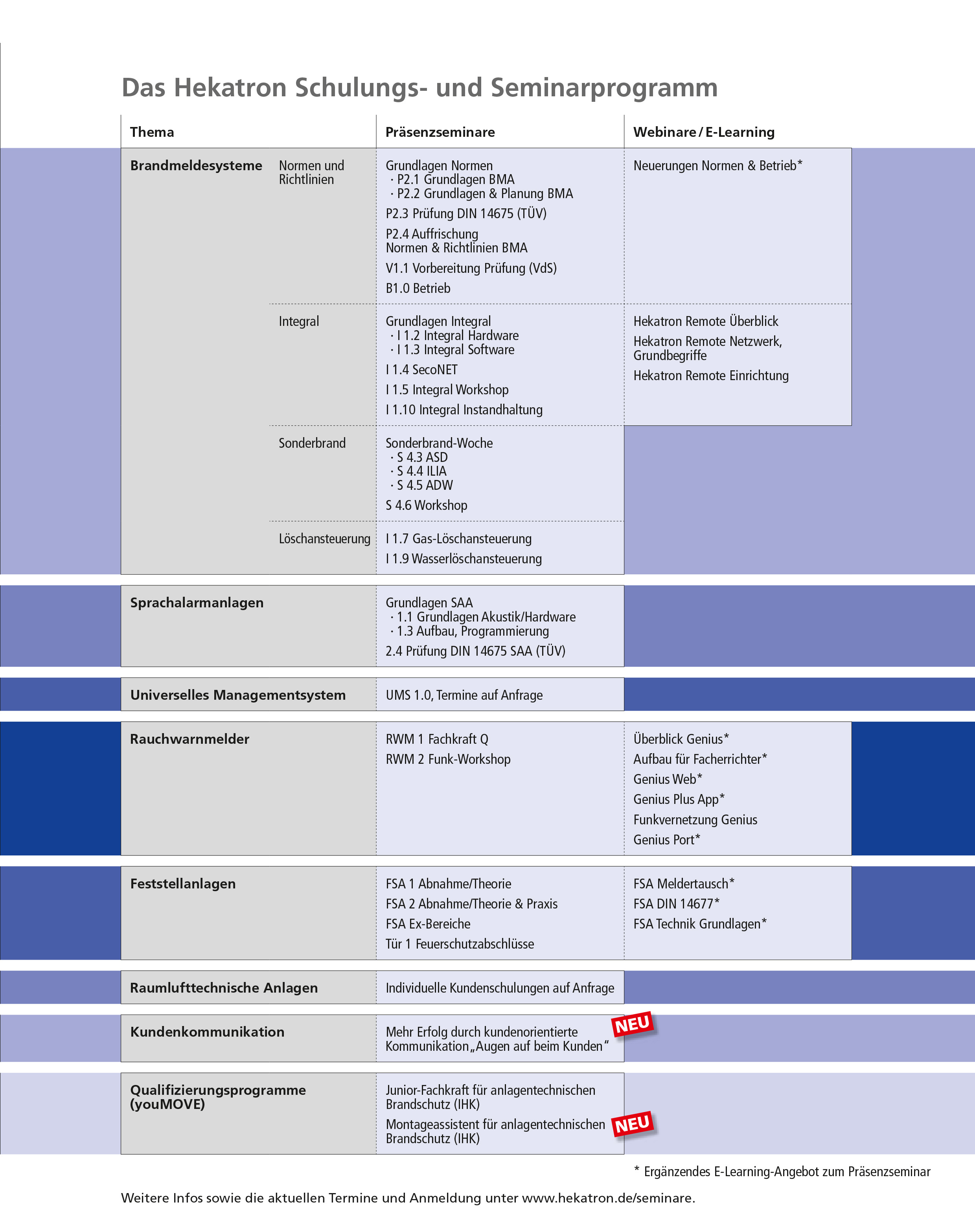 Um neue Angebote erweitert und wie immer auf dem aktuellen technischen und normativen Stand präsentiert sich das Seminarprogramm 2018 von Hekatron.