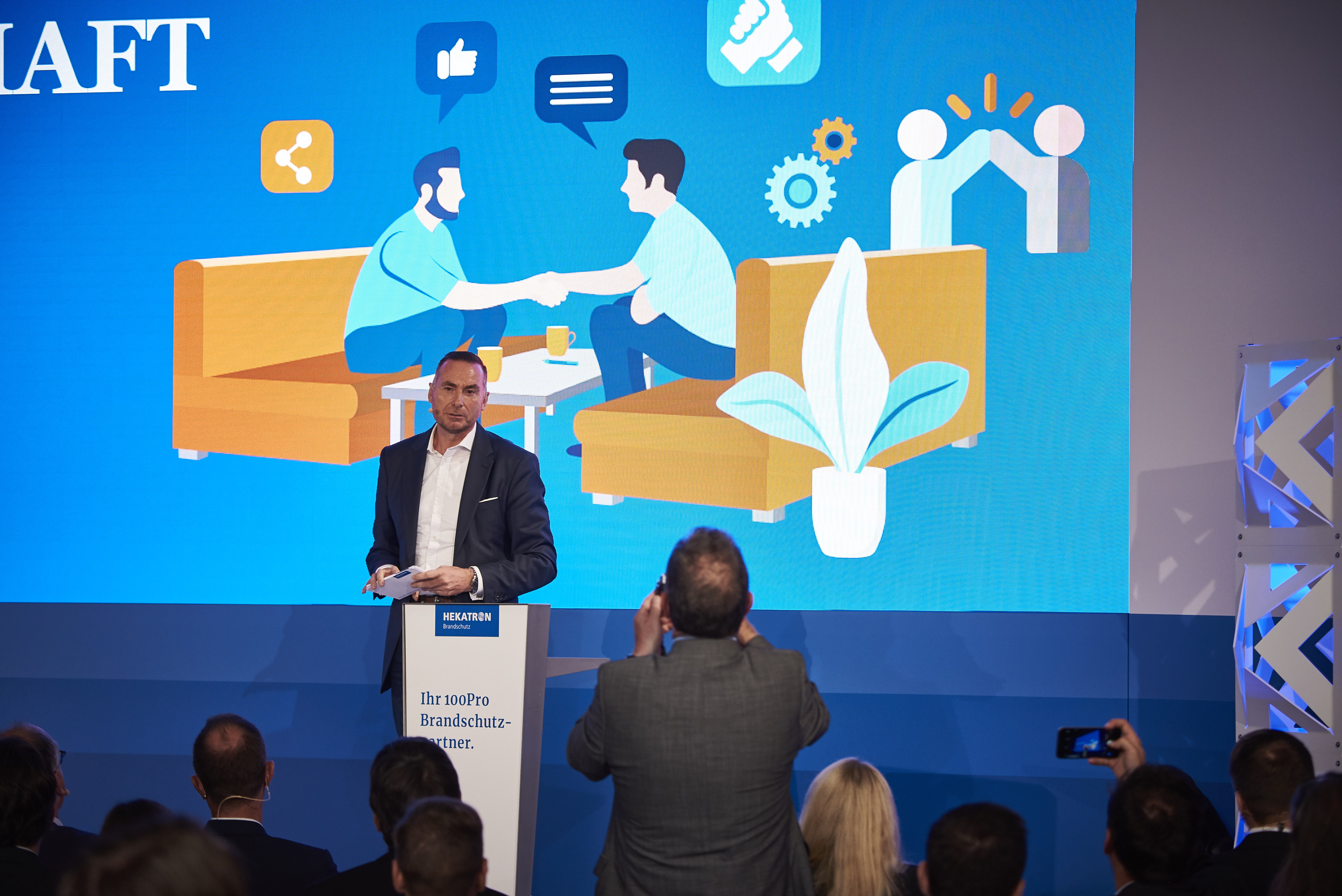 Unter dem Motto „Chancen des Wandels anpacken. Gemeinsam.“ sprach Hekatron Brandschutz in diesem Jahr mit 100 Partnern im unterfränkischen Bad Brückenau. Alle Vorträge kreisten dabei um die Frage, wie sich die Digitalisierung gemeinsam, partnerschaftlich und vertrauensvoll vorantreiben lässt. Ein Beispiel für eine erfolgreiche Transformation aus dem Handwerk machte den Anwesenden Mut, die vor ihnen liegenden Aufgaben anzupacken. Zudem stellte Hekatron Brandschutz mit der neuen digitalen Serviceplattform für Errichter „Mein HPlus Service-Portal“ ein Angebot vor, das die Partner bei der Digitalisierung unterstützt. Und noch ein Punkt stand im Fokus der Diskussion: Vertrauen als der Schlüssel zum Erfolg. Die Basis dafür ist insbesondere in Zeiten des Wandels, den die Digitalisierung mit sich bringt, der persönliche Kontakt, der offene Austausch, den Hekatron Brandschutz mit seinen Partnern lebt.