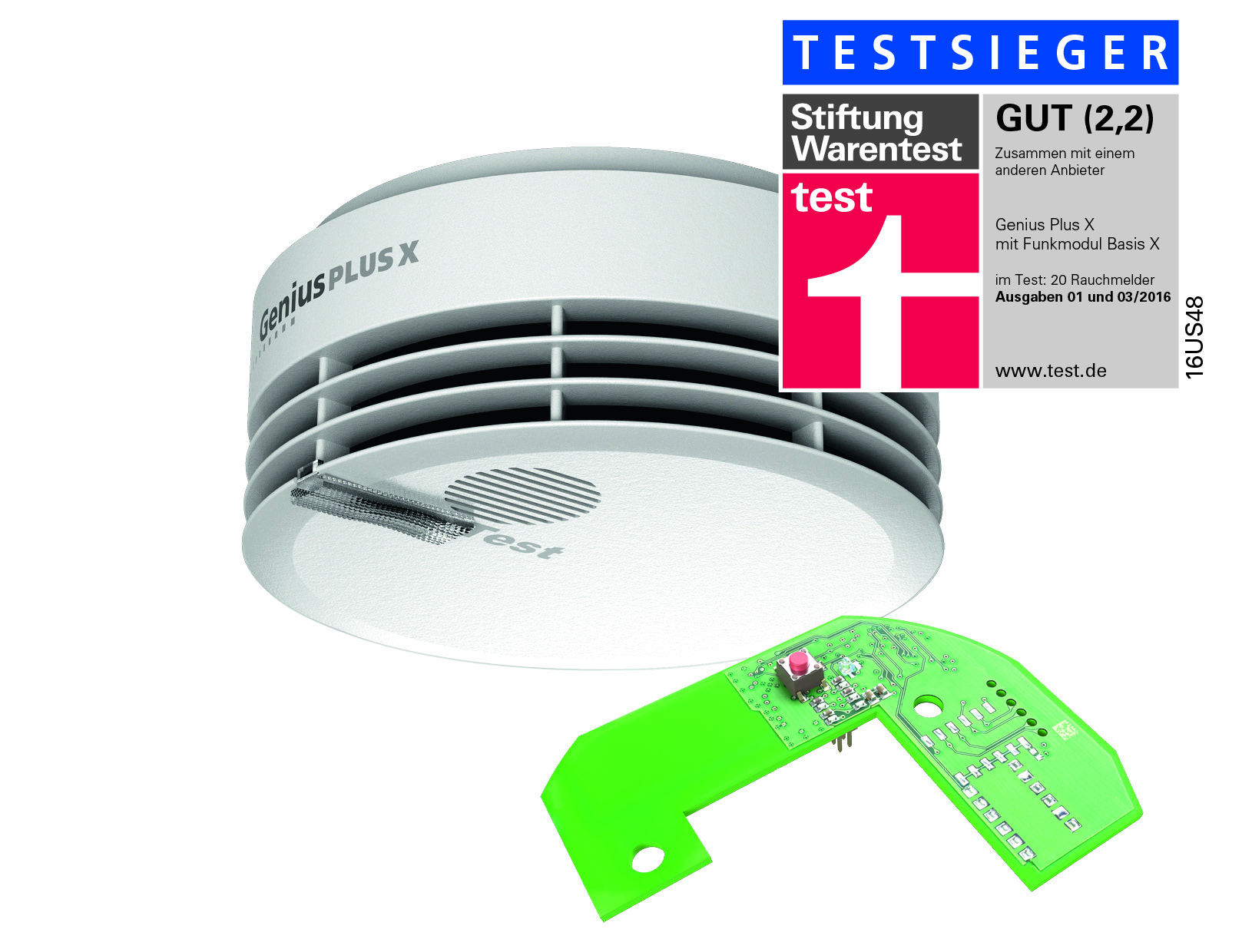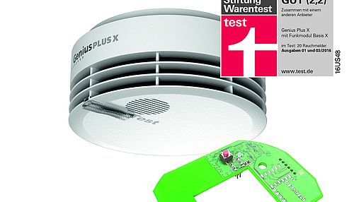 Genius Plus X mit Funkmodul – der Funk-Rauchwarnmelder im System Genius Plus.