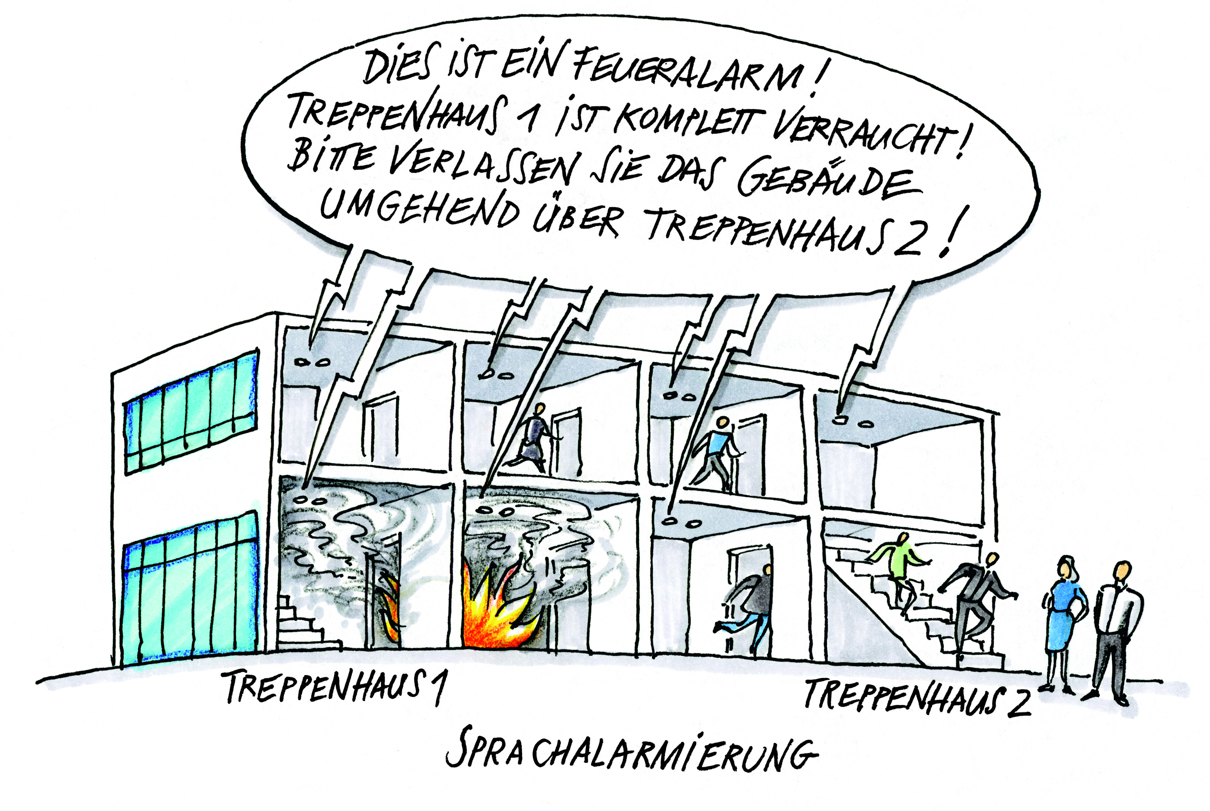 Mit Sprachdurchsagen über SAA lassen sich gezielt die Fluchtwege aufzeigen, die benutzbar sind.