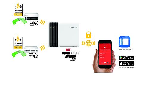 Das Genius Funksystem: Funk-Rauchwarnmelder Genius Plus X, Genius Port und Genius Control App.