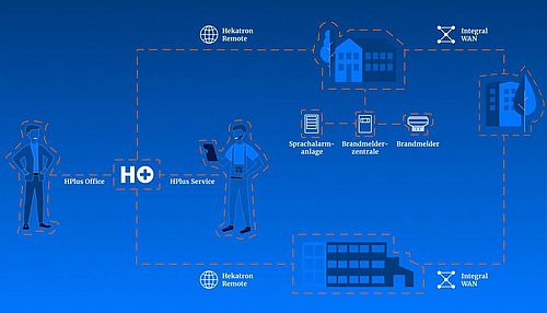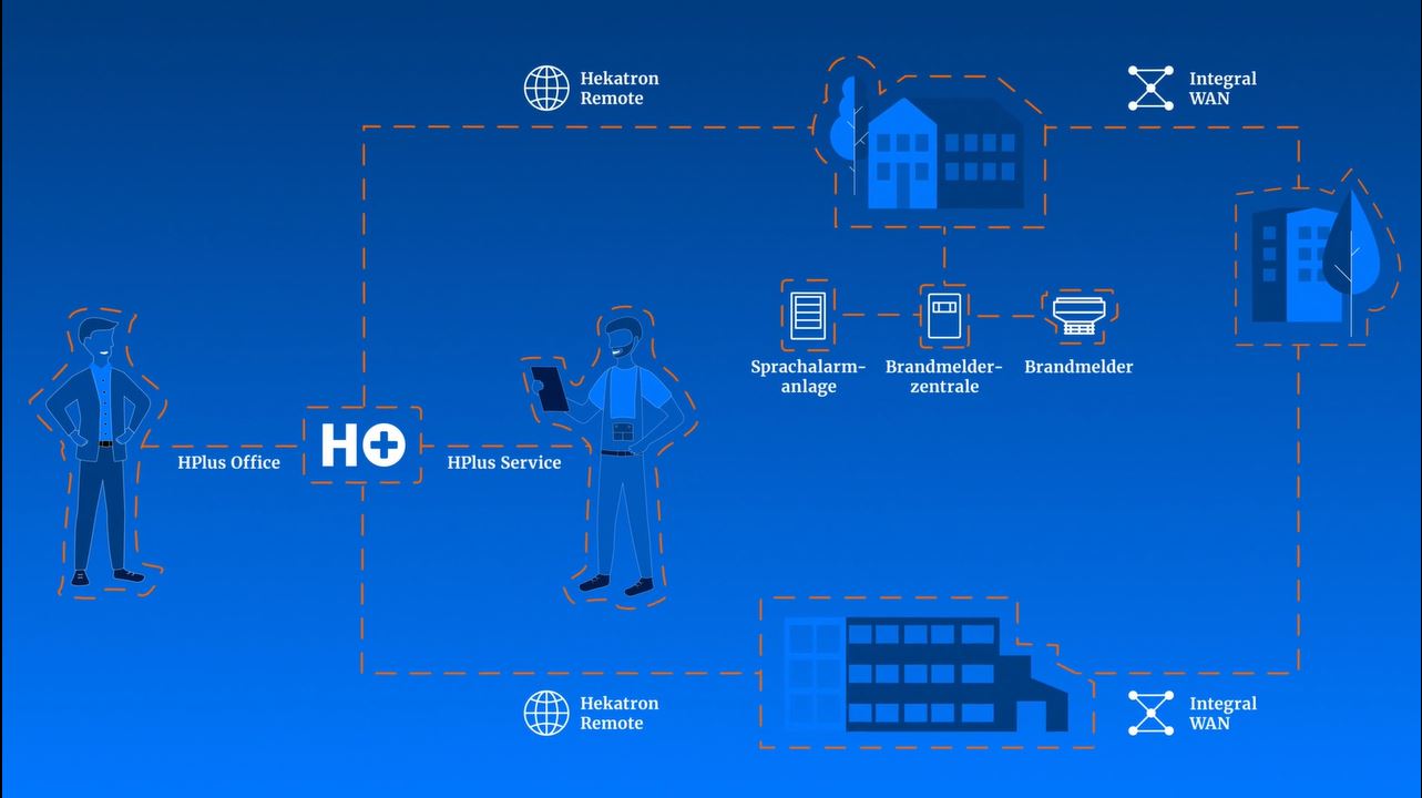 Ob Sprachalarmanlage, Brandmeldezentrale, Brandmelder oder digitale Dienstleistung: Die Brandschutzlösungen innerhalb eines Gebäudes lassen sich miteinander vernetzen und flexibel um neue Komponenten ergänzen. Über 350.000 Brandschutzanwendungen werden so bereits digital von Hekatron betreut. Das Onlineportal HPlus Office ist dabei derzentrale Zugang, mit dem man als Brandschutzprofis mühelos den Überblick über alle Daten und Anlagen behält ‒ natürlich standortunabhängig. Zudem erleichtert HPlus Office die Planung und Verwaltung sowie den Service und Betrieb von Anlagen. Wer zudem die HPlus Service-App nutzt, kann die Inbetriebnahme und Instandhaltung mit nur einer Arbeitskraft vornehmen und alle Arbeitsschritte digital dokumentieren. Techniker können mit der App jederzeit auf alle relevanten Informationen zugreifen.