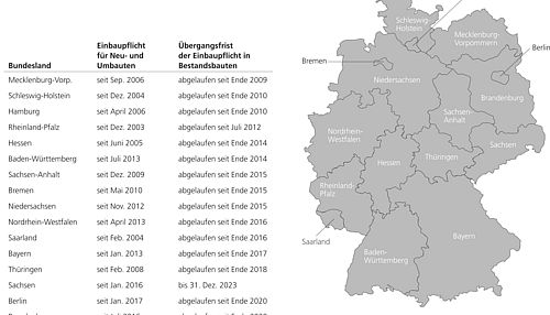 Diese Frage wird von jedem Bundesland individuell beantwortet. Der überall geltende Mindeststandard ist die Ausstattung von Schlafzimmern und deren Fluchtwegen. Doch einige Landesbauverordnungen weisen Besonderheiten auf. So beziehen Baden-Württemberg, Hessen und Sachsen alle Räume, in denen bestimmungsgemäß geschlafen wird, in die Einbaupflicht ein. Berlin und Brandenburg fordern sogar die Ausstattung sämtlicher Wohnräume. Schnelle Orientierung und detaillierte Informationen zu den Vorschriften der einzelnen Länder gibt es auf der Website der Initiative „Rauchmelder retten Leben“ unter: www.rauchmelder-lebensretter.de/rauchmelderpflicht/