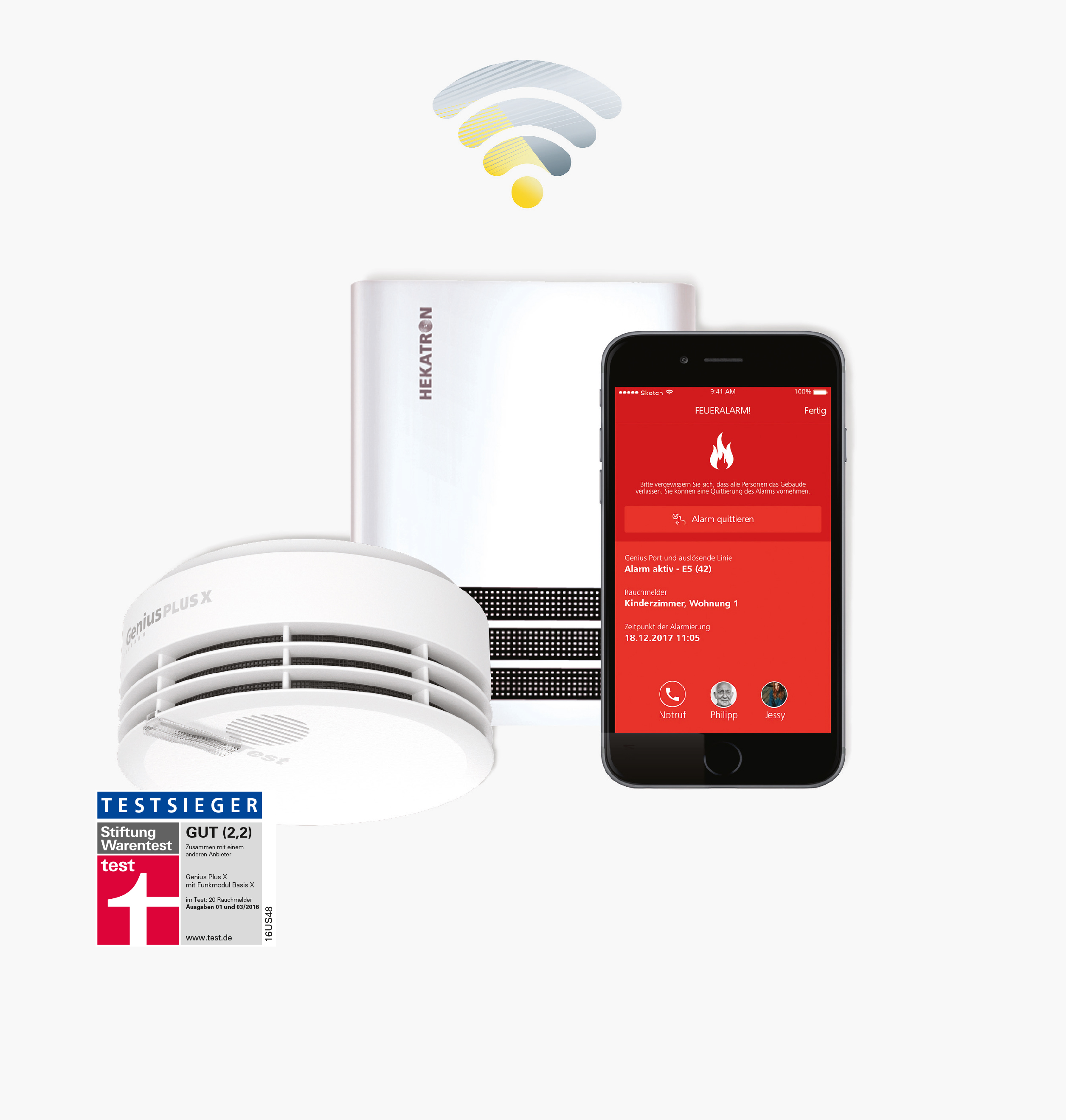 Das smarte Rauchwarnmelder-System Genius Plus: Funk-Rauchmelder Genius Plus X, Genius Port und Genius Control App. Jederzeit sicher – jederzeit informiert.
