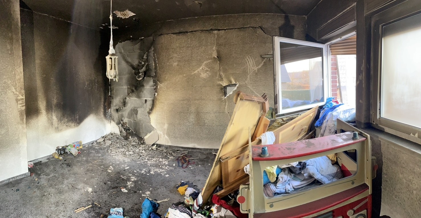„Es dauerte eine kurze Schrecksekunde, um zu realisieren, was gerade los war“, erinnert sich Merle Schneider. Gegen 19 Uhr hatte sie am 27. Februar 2023 den jüngsten ihrer drei Söhne ins Bett gebracht – nur gut 20 Minuten später wählte sie den Notruf. Kurz zuvor hatte der Rauchwarnmelder im Kinderzimmer des einjährigen Babys unüberhörbar Alarm geschlagen: „Als ich ins Zimmer kam, blickte unser Kind ganz ruhig und unaufgeregt in die Wand aus Flammen und Rauch, die sich zügig ausbreitete. Ich will mir gar nicht ausmalen, was hätte passieren können.“ Doch so blieb genug Zeit, die Kinder und sich selbst in Sicherheit zu bringen. Ehemann Chris Schneider erfuhr am Arbeitsplatz von dem Geschehen: Der Berufsfeuerwehrmann absolvierte gerade seinen Schichtdienst.