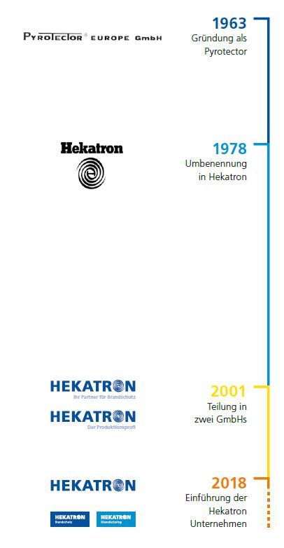 Die Erfolgsgeschichte der Hekatron Unternehmen begann im Jahr 1963 mit der Gründung eines amerikanisch-deutschen Joint Venture, der Pyrotector Europe GmbH. Der heutige Firmenname Hekatron entstand erst sechzehn Jahre später.